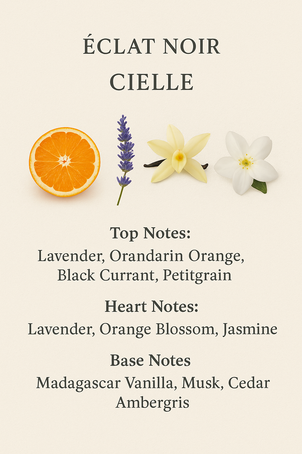 Each order includes one Éclat Noir – Cielle 50 mL Extrait de Parfum bottle, carefully packaged for freshness and luxury presentation.
